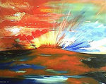 2011Dit doek was voor mij een inspiratie om te gaan schilderen. 5500 honderd lichtjaren hier vandaan gebeurde deze explosie. Op 3D doek gemaakt met zand en acrylle.